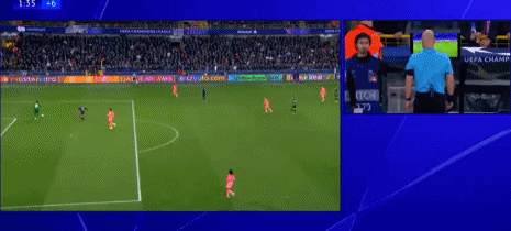 什琴斯尼试图摆脱布鲁日球员的逼抢,他尝试过人失败,结果摔倒在地,球也滚入了自家球门,比分变成了4比3,直到VAR介入为止。视频助理裁判提醒主裁安东尼-泰勒前往场边观看回放,认为这次接触可能构成对门将的犯规。